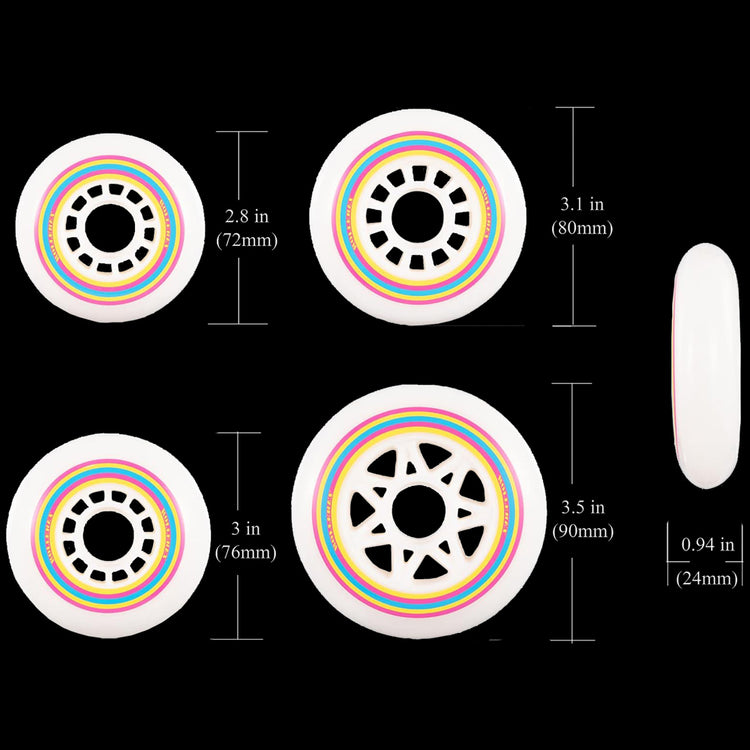 - COMPATIBLE WITH ALL STANDARD INLINE SKATES - Glide along the boardwalk in these colorful rainbow-themed roller blade wheels! They fit all standard inline skates and offer balanced speed and control for beginner, intermediate and advanced skaters.