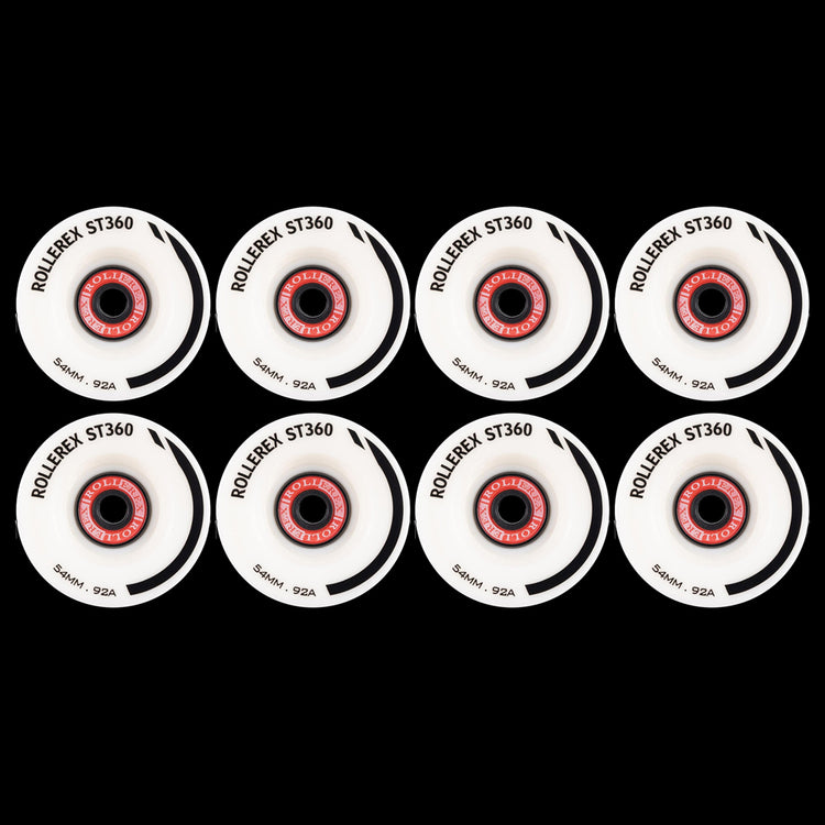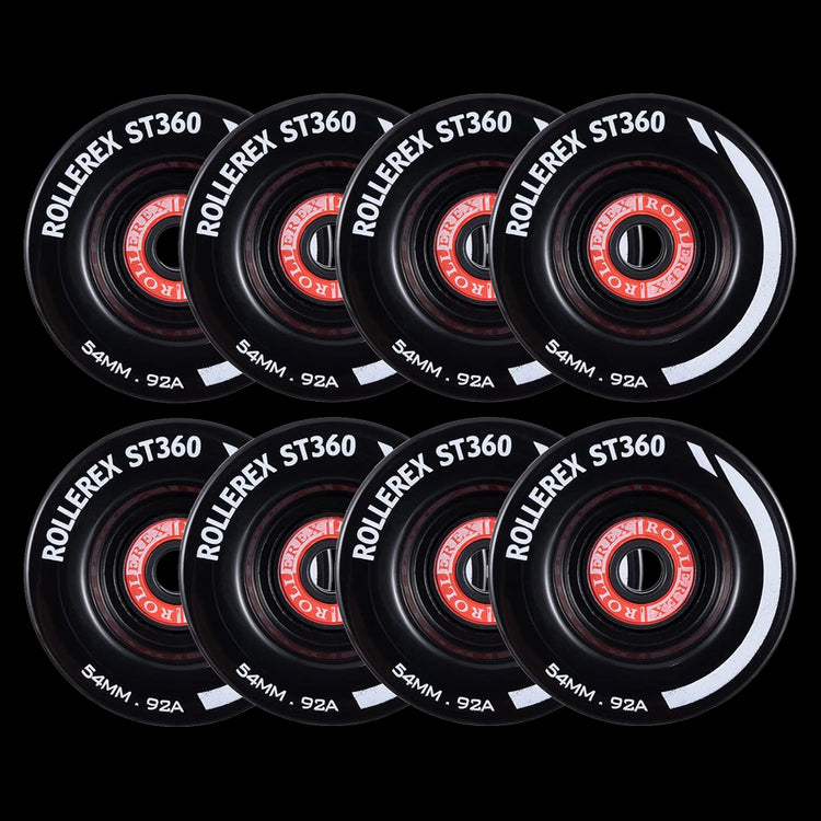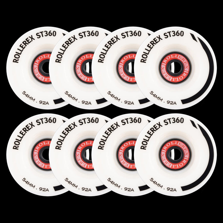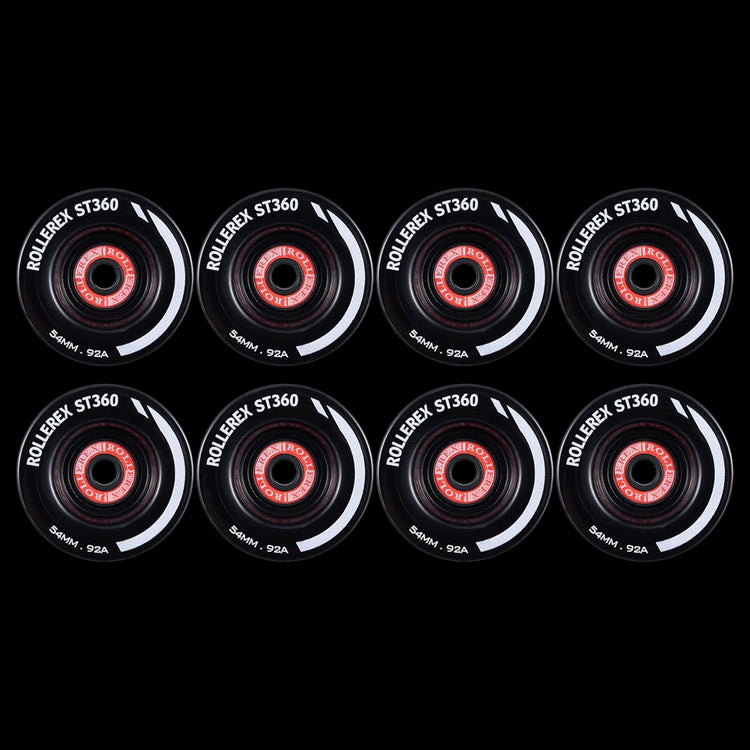 Rollerex ST360 92A 54mm Roller Skate Wheels 8-Pack Optional Bearings Set